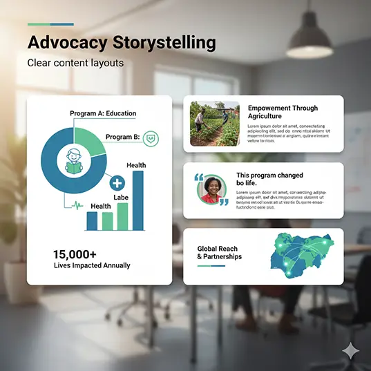 Present programs and impact clearly with content layouts built for clarity and trust.